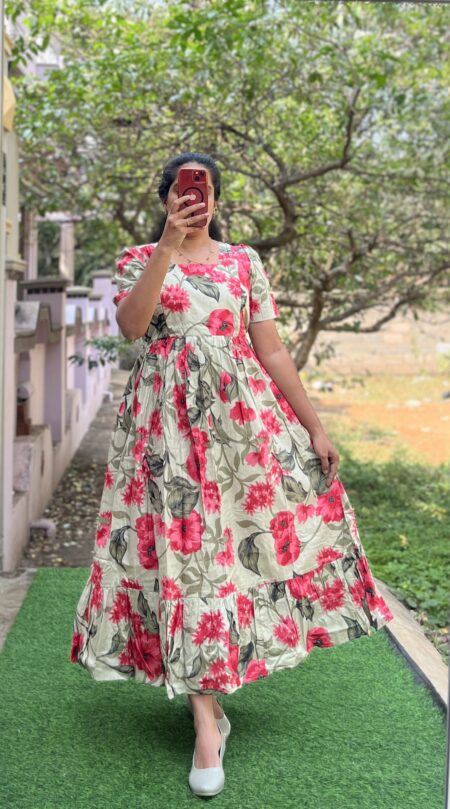 Cotton Maternity/Feeding kurti - SS - Cotton Redishpink Lotus