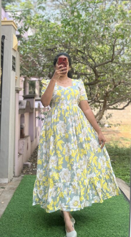 Cotton Maternity/Feeding kurti - SS - Cotton skyblue Garden
