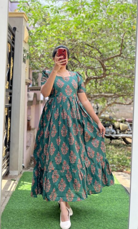 Cotton Maternity/Feeding kurti - Cotton BottleGreen