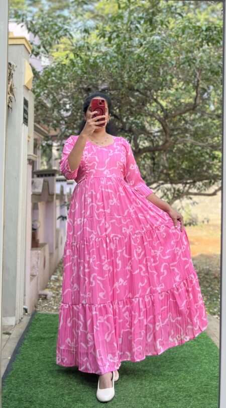 Georgette Maternity/ Feeding Maxi - 3tier Georgette Pink Ruby