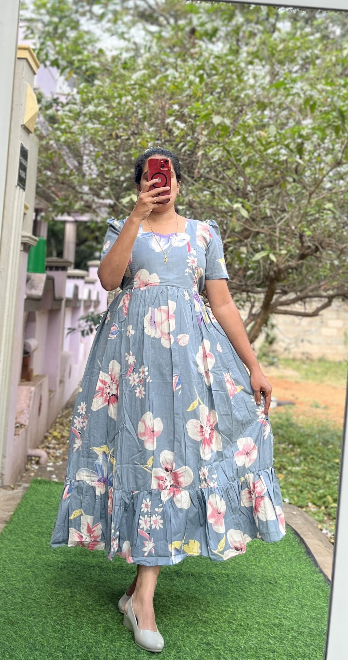 Cotton Maternity/Feeding kurti – SS – Cotton Digital Grey