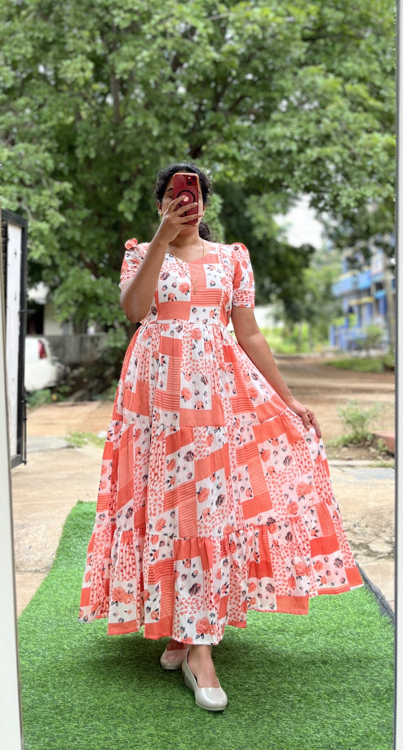Delta Crush Maternity/Feeding kurti – 3tier- Delta PanelOrangee