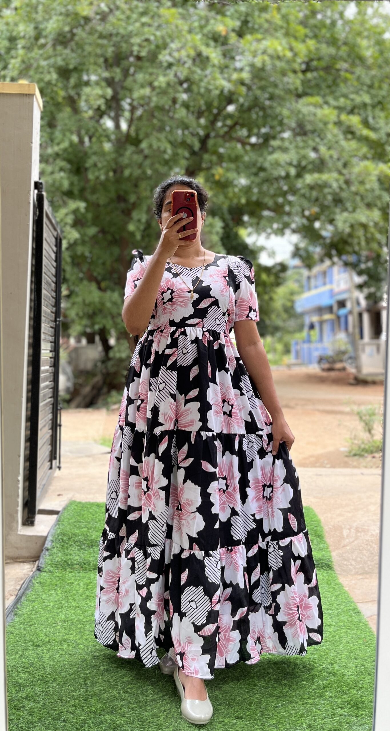 Delta Crush Maternity/Feeding kurti – 3tier- Delta Patch Black