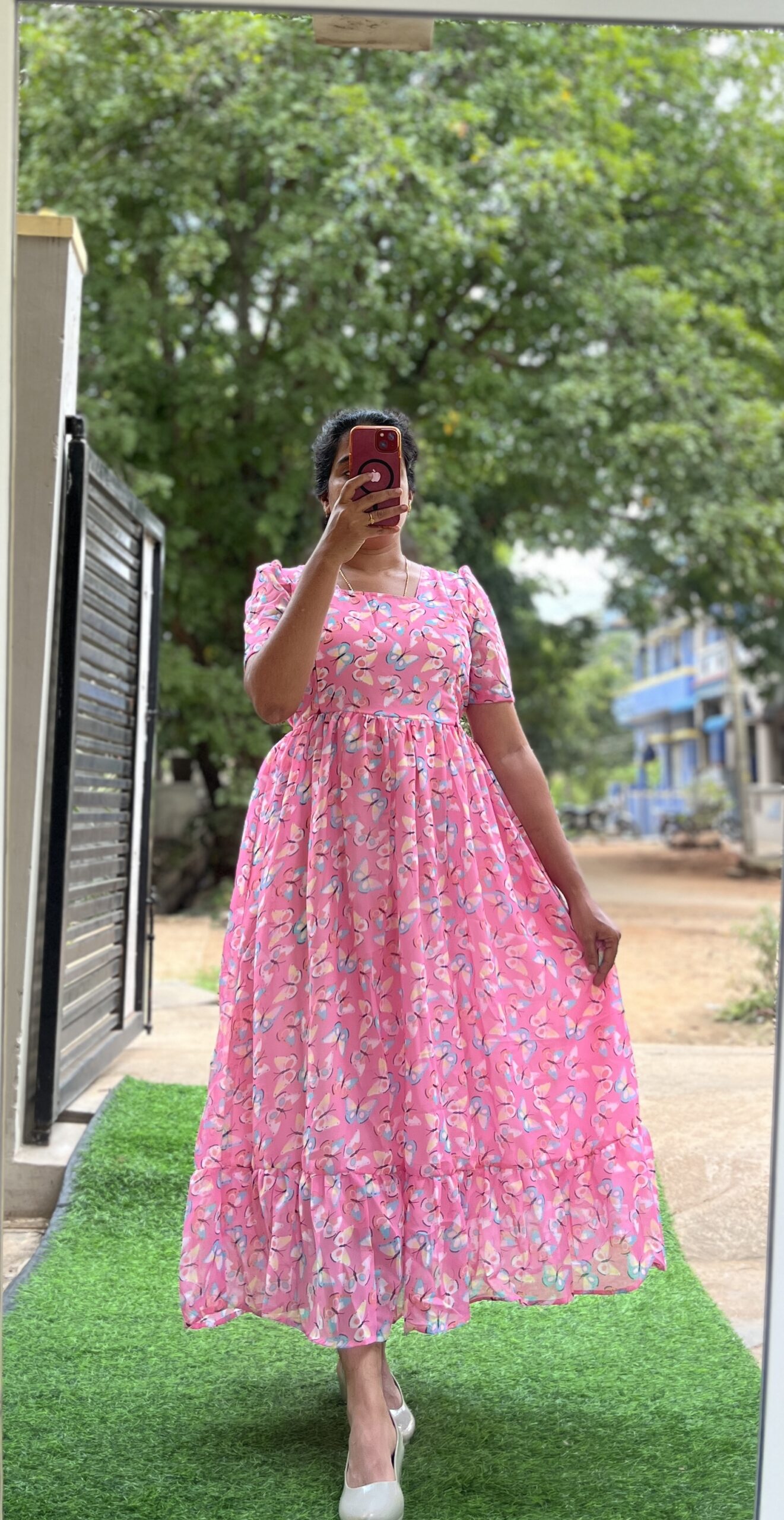 Georgette Maternity/ Feeding Maxi – 2tier – PinkButterfly