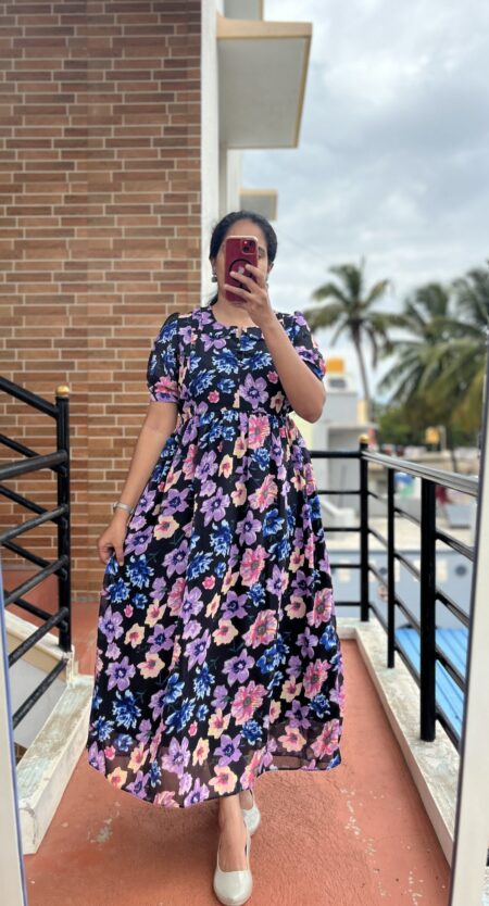 Georgette Maternity/ Feeding Maxi – 3tier – Crush Georgette