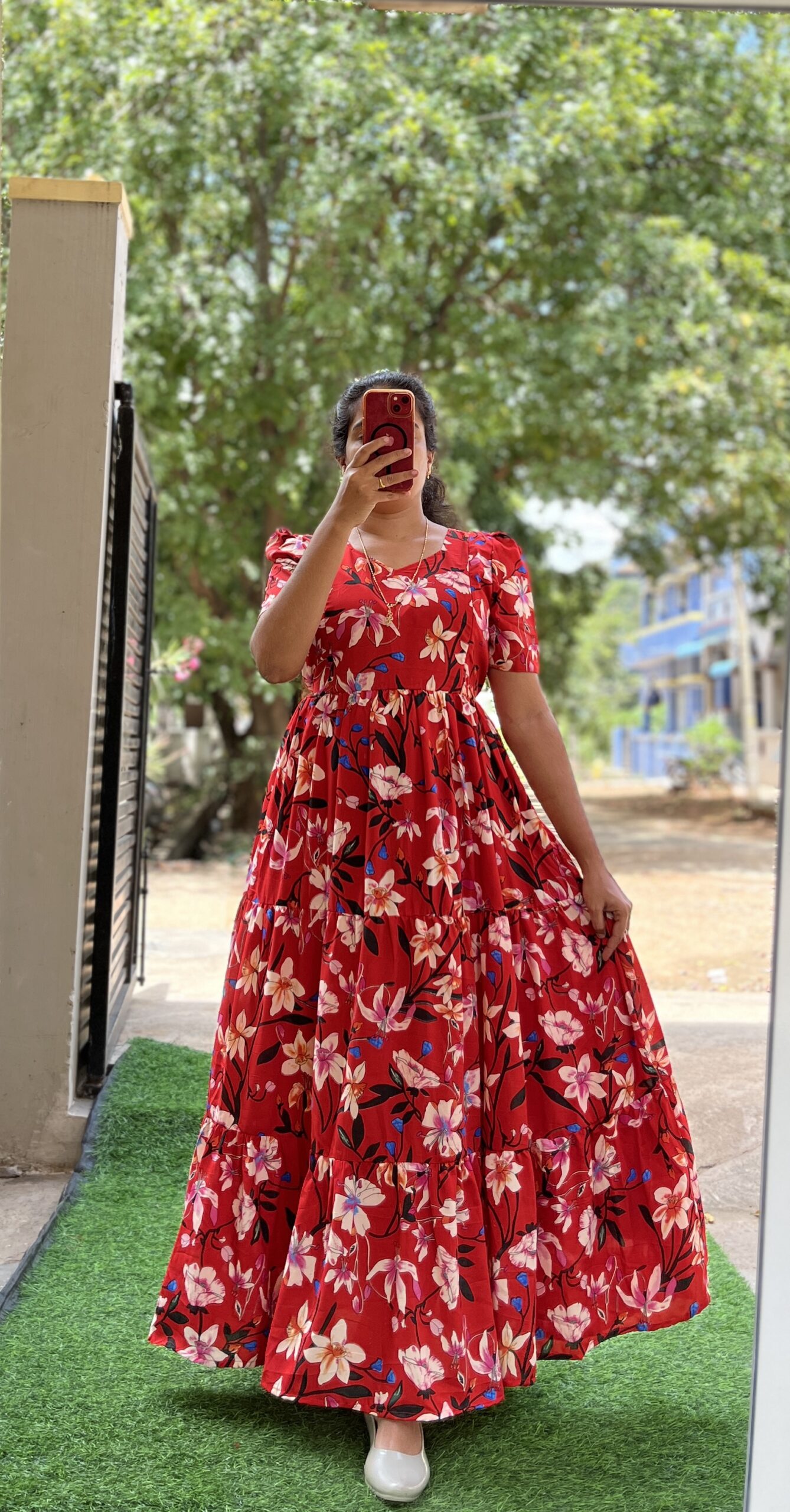 Georgette Maternity/ Feeding Maxi – 3tier – georgette Red lilly