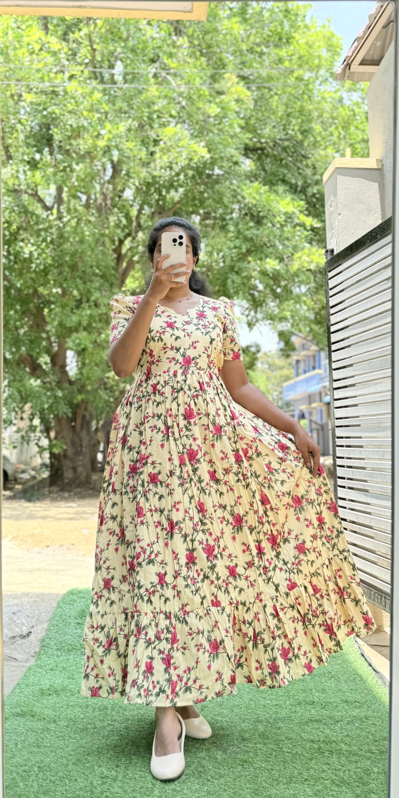 Kantha Cotton Maxi – Creamy Delight