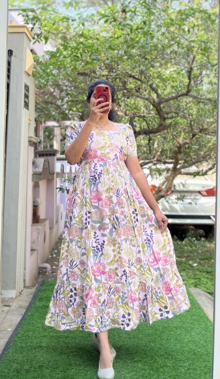 Delta Crush Maternity/Feeding kurti - 3tier- Delta Leaf Pink
