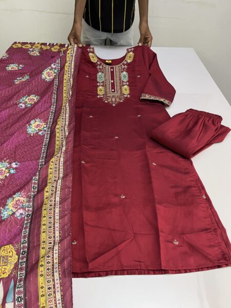 Shimmer Kurti set -Normal 3pc set -X-mas Maroon